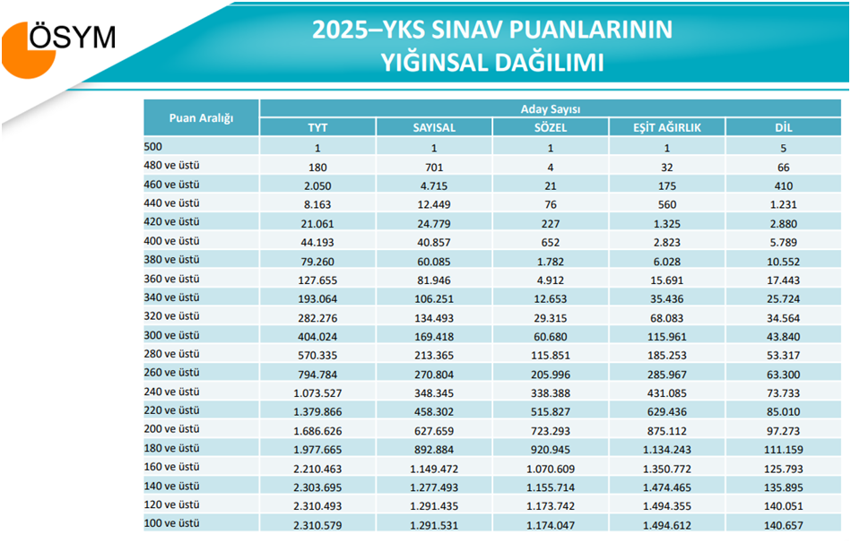 ÖSYM tarafında yayınlanan veriler (ÖSYM 2025,https://cdn.osym.gov.tr/pdfdokuman/2025/YKS/sayisalbilgiler_tayd19072025.pdf)